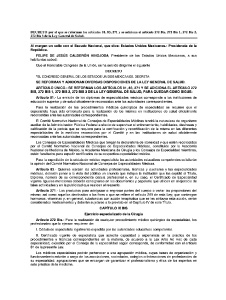 MARCO JURÍDICO DECRETO POR EL QUE SE REFORMAN LOS ARTÍCULOS 81, 83, 271 Y SE ADICIONA EL ARTÍCULO 272 BIS, 272 BIS 1, 272 BIS 2, 272 BIS 3 DE LA LEY GENERAL DE SALUD Consultar documento